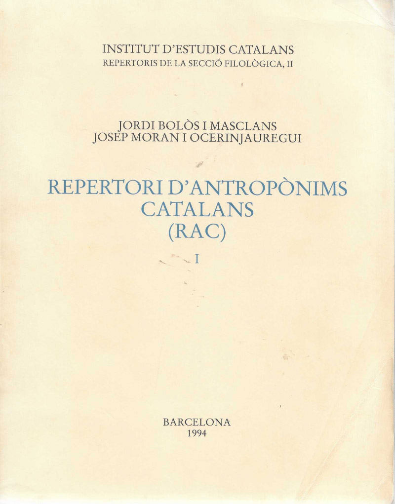 Llibre d'ocasió. Publicat en català a Barcelona l'any 1994. Tiratge de 600 exemplars. Institut d'Estudis Catalans. Repertoris de la Secció Filològica, II.