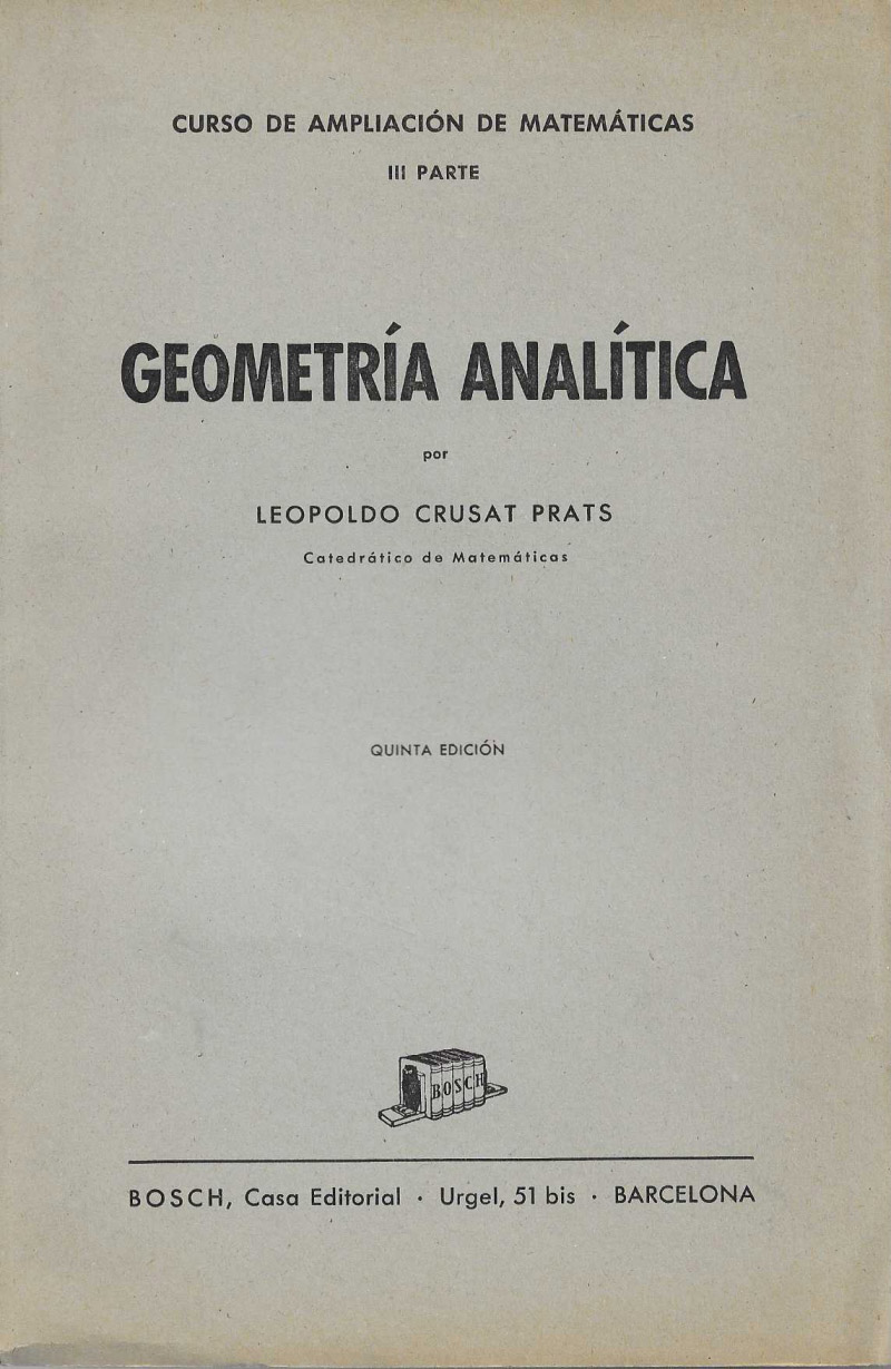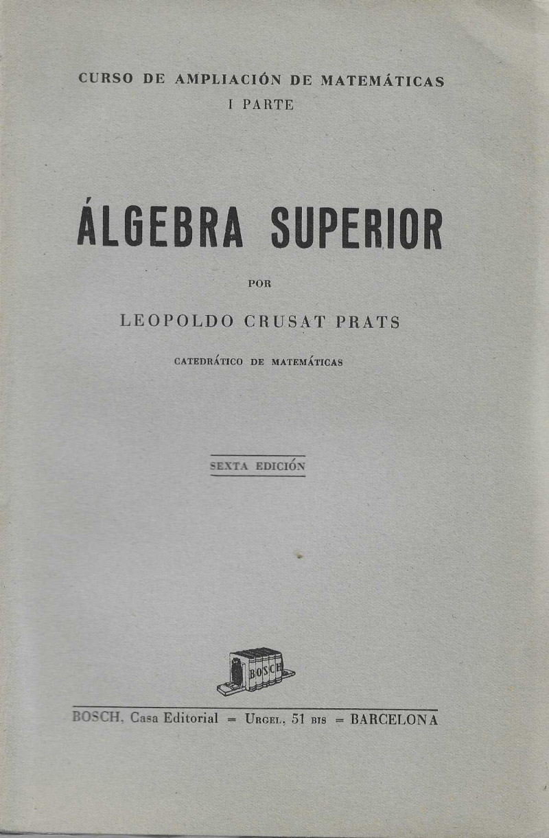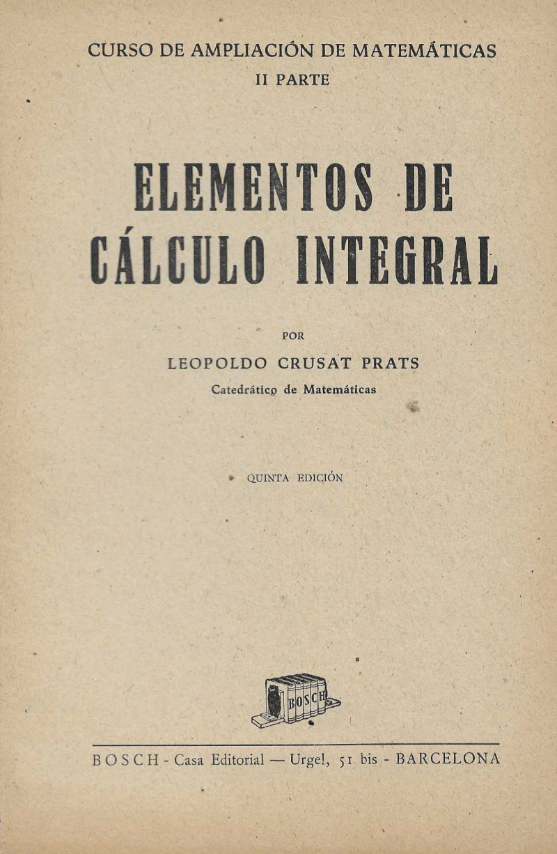Tres volúmenes: I parte: Álgebra superior. II parte: Elementos de Cálculo Integral. III parte: Geometría Analítica.