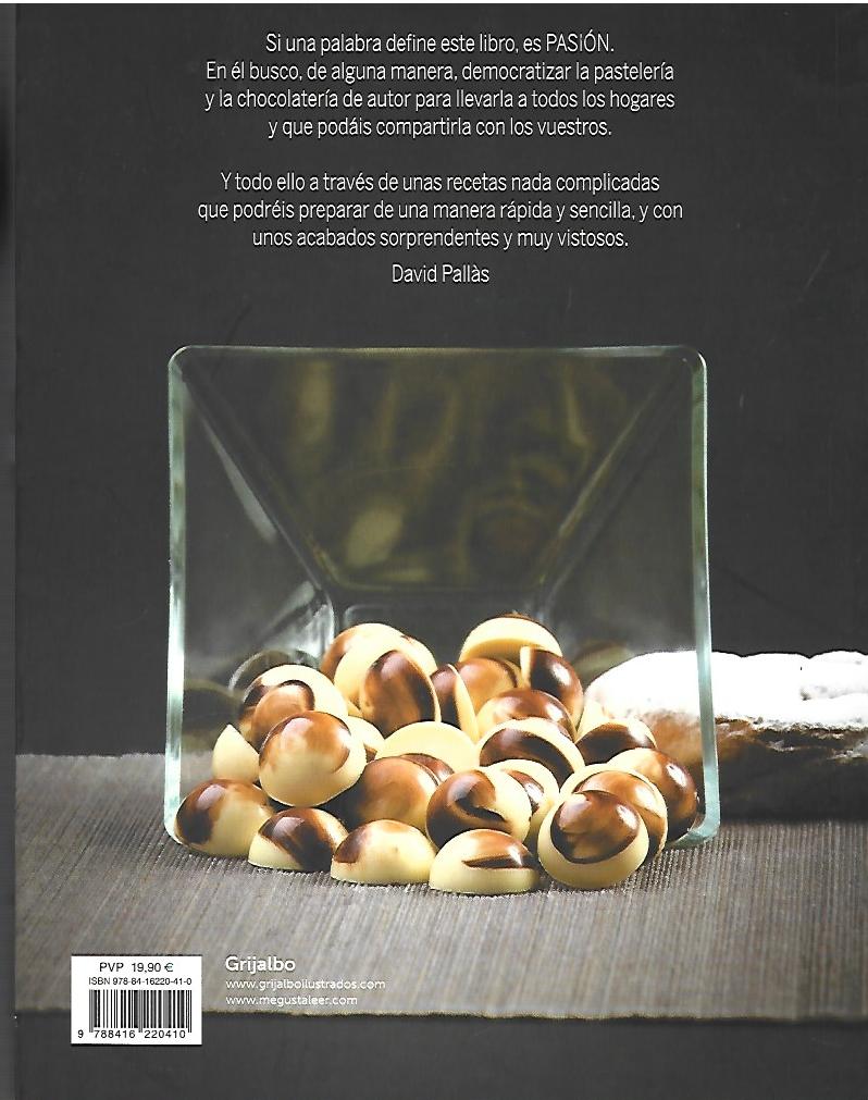 En este libro el maestro chocolatero David Pallàs propone 80 maravillosas recetas ilustradas paso a paso, con las que conocer las principales técnicas para trabajar el chocolate y preparar postres fáciles y a la vez sofisticados. El libro está en perfecto estado y dedicado y firmado por el autor (para el anterior propietario) en la página de cortesía.