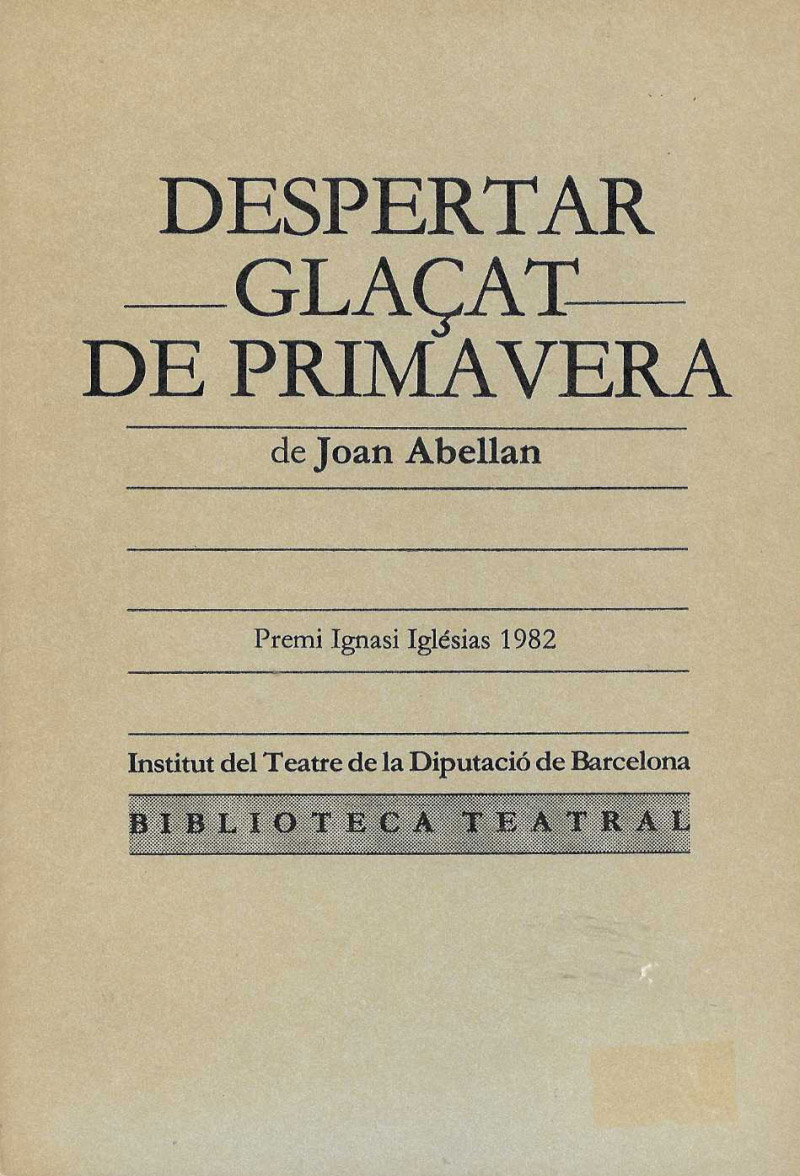 Llibre d'ocasió. Publicat a Barcelona l'any 1983. Premi Ignasi Iglésias 1982. Institut del Teatre.