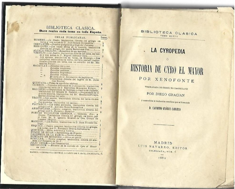 Trasladada de griego en castellano por Diego Gracian y enmendada la traducción castellana por el licenciado Casimiro Flórez Canseco.