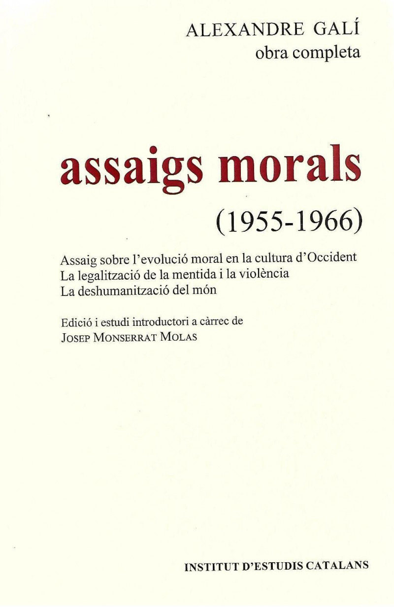 Assaig sobre l'evolució moral en la cultura d'Occident. La legalització de la mentida i la violencia. La deshumanització del món. Edició i estudi introductori a carrec de Josep Montserrat Molas