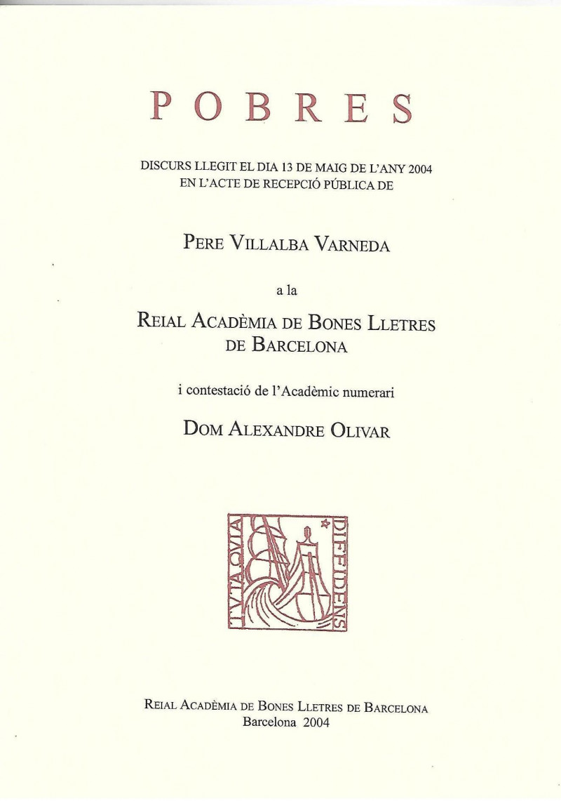 Discurs llegit el dia 13 de maig de l'any 2004 en l'acte de recpeció pública dPere Villalba Varneda a la Reial Acadèmia de Bones Lletres de Barcelona i comtestació de l'Academic numerai Dom Alexandre Olivar.