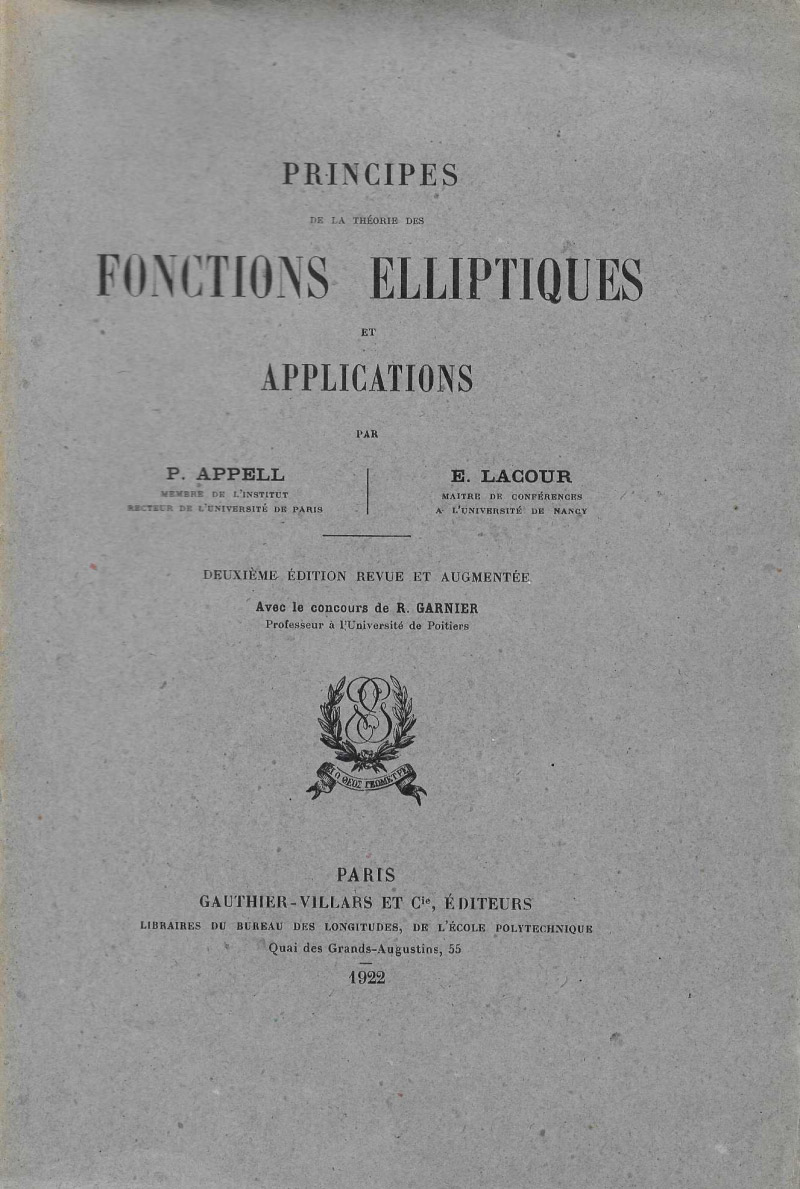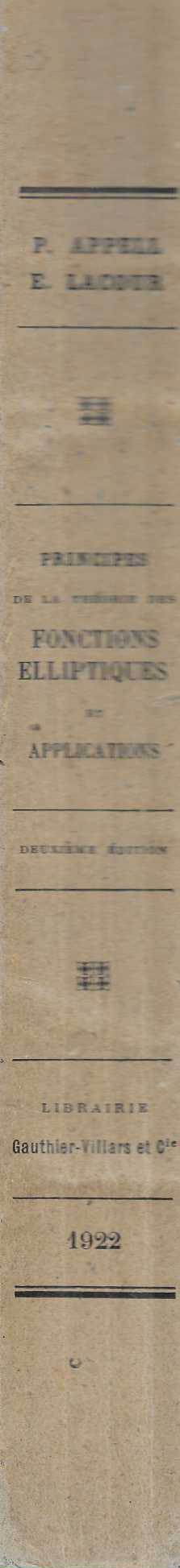 Les Traités sur les fonctions elliptiquews imprimés en France sont des Traités complets destinés spécialement aux mathématiciens: la plupart d'entre eux prennent comme point de départ les théorèmes géneraux de la théorie des fonctions; dans tous, l'étude des fonctions elliptiques est envisagée au point de vue le plus général et poussée le plus loin possible (multiplication, division, transformation, équations modulaires, multiplications complexe). Nous sommes proposé de faire un traité d'un caractère élémentaire, en un seul volume, contenant les principes essentiels de la théorie et montrant, par des applications simples, combien ces fonctions sont utiles pour la résolution des certaines questions de Géometrie, de Mécanique et de Physique mathématique.
