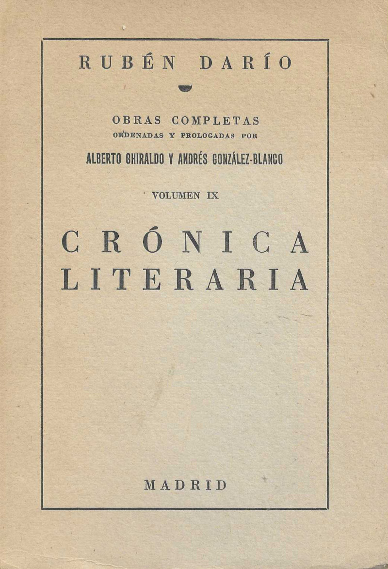 Libro de ocasión. Publicado en Madrid el año 1924. Obras completas, ordenadas y prologadas por Alberto Ghiraldo y Andrés González-Blanco. Volumen IX