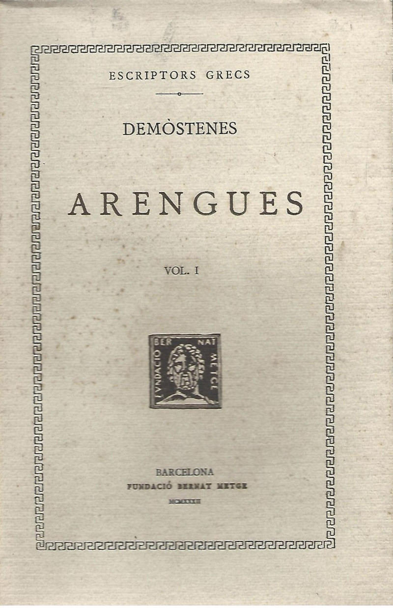 Col.lecció Escriptors Grecs. Sobre les Simmories - Pels Megapolites - Fili -Pica 1 - Per la llibertat dels Rodis - Sobre l'organització financiera - Olintiaques I-III