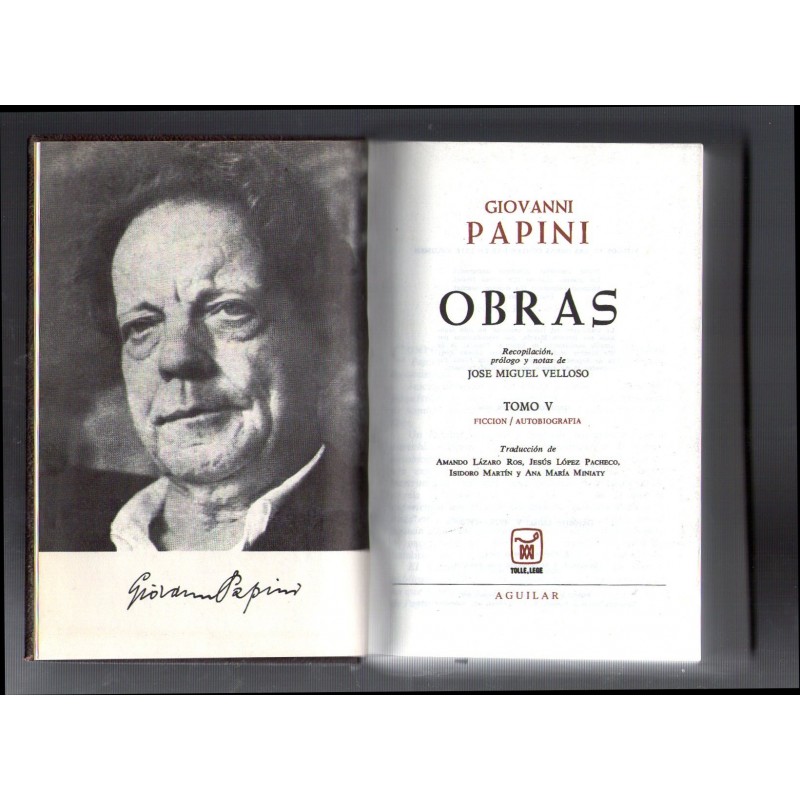Papini, Giovanni (1881-1956) Madrid : Aguilar 2ª ed. 1966 1 v. : il. ; 19x12,5 cm 1494 p. Encuadernación editorial en piel marrón. Dorados en el lomo. Muy buen estado de conservación.